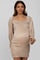 Beige Metallic Smocked Ruffle Accent Maternity Fitted Dress