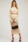 Beige Mock Neck Long Sleeve Crop Maternity Midi Skirt Set