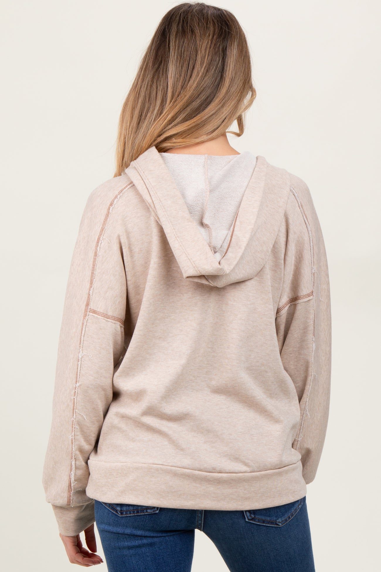 Beige Oversized Raw Hem Maternity Hoodie