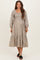 Beige Plaid Smocked Puff Sleeve Maternity Midi Dress
