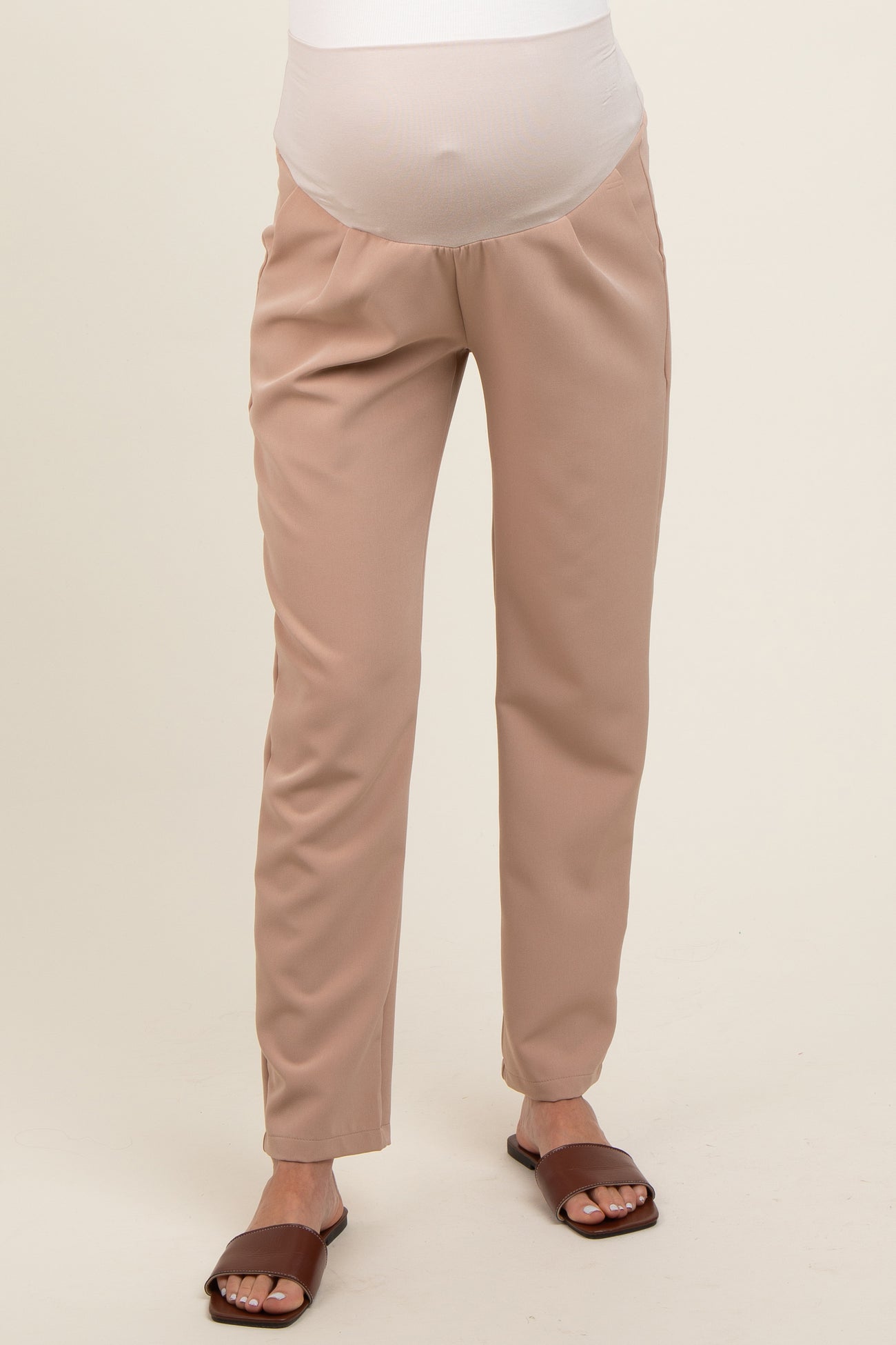 Beige Pleated Relax Fit Maternity Pants