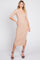 A solid ribbed knit dress with a collared neckline and two small side slits.