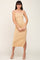 A solid fitted midi dress in a ribbed knit. Features adjustable straps and side slit.