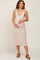 Beige Ribbed Shoulder Tie Maternity Midi Dress
