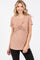 A solid ribbed short sleeve top with a twist detail in front.