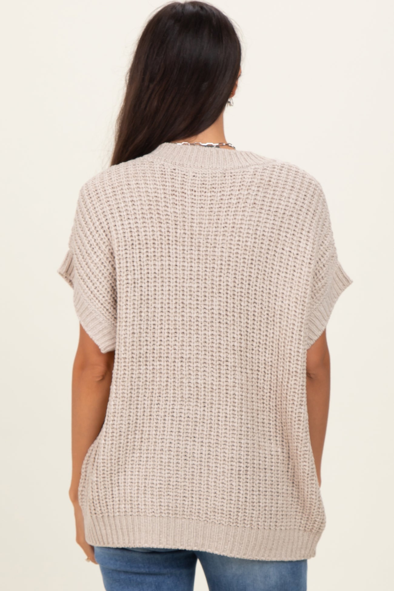 Stay cozy and stylish in this Beige Short Sleeve Round Neck Sweater. Crafted with a soft, waffle-knit texture, it offers a relaxed fit that's perfect for layering or wearing alone. The neutral beige shade pairs effortlessly with any outfit, while the short sleeves and round neckline provide a modern, casual look. Whether you're dressing up with accessories or keeping it simple with jeans, this versatile sweater is a wardrobe essential for everyday comfort and chic appeal. Ideal for transitional weather, it combines warmth and breathability for all-day wear.