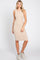 A sleeveless ribbed fitted dress. Rounded neckline.