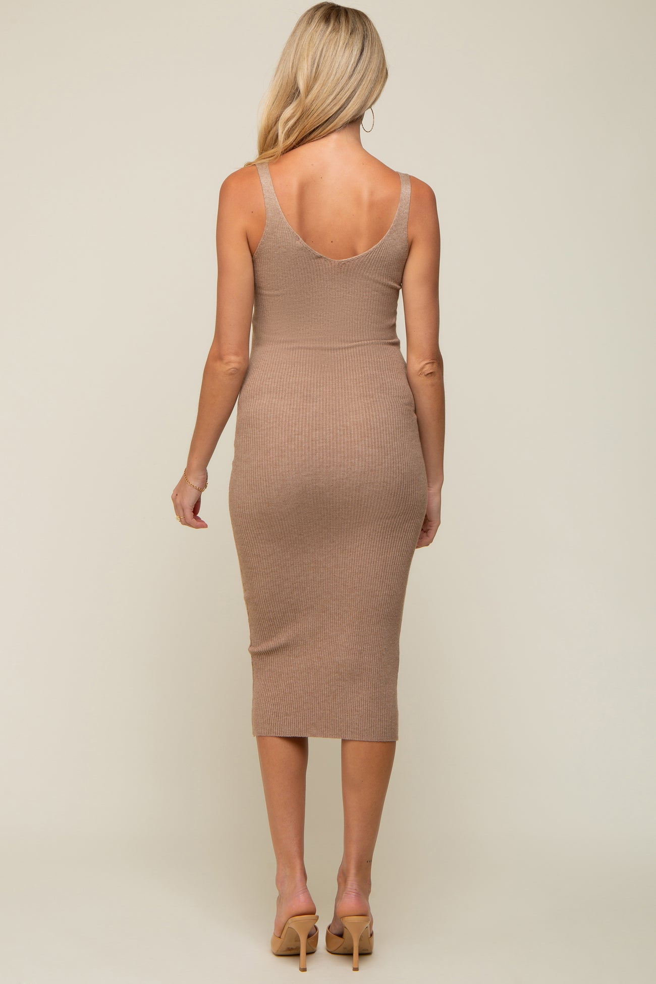 Beige Sleeveless V-Neck Maternity Sweater Dress