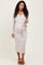 Beige Solid Brushed Rib Long Sleeve V-Neck Fitted Maternity Midi Dress