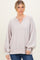 Beige Solid Rib Long Sleeve V-Neck Oversized Tunic Top