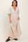 Beige Solid Woven Elbow Sleeve V-Neck Button Down Maxi Dress