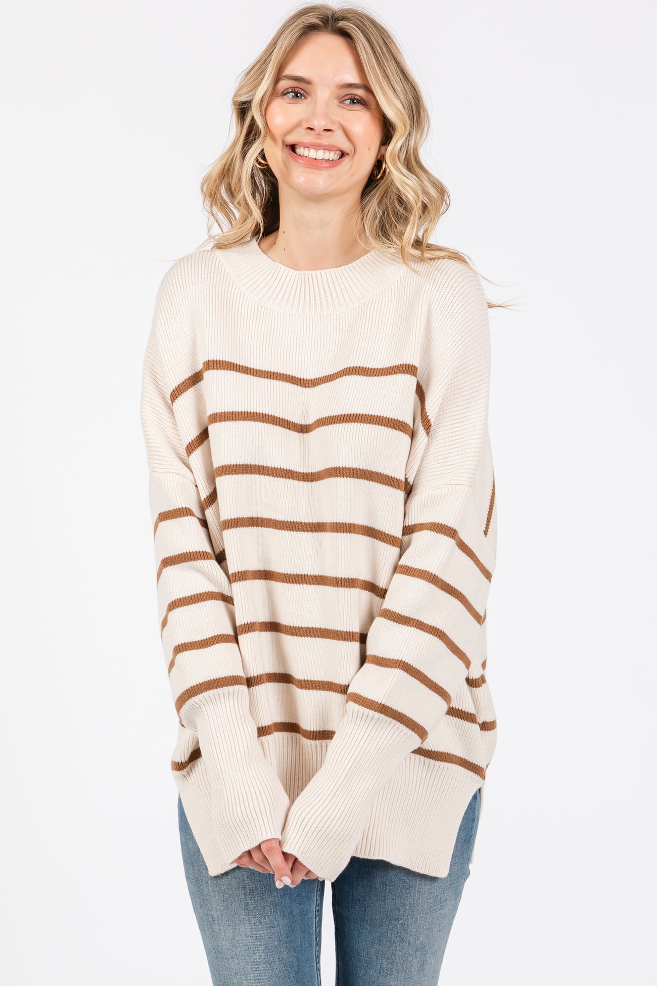 Stay cozy and stylish in our Striped Drop Shoulder Maternity Sweater! Designed for comfort and versatility, this soft knit sweater features modern stripes, making it perfect for everyday wear or dressing up for a casual outing. The relaxed drop shoulder silhouette and stretchy fabric accommodate your growing bump, offering a flattering fit throughout your pregnancy and beyond. Easy to pair with your favorite jeans or leggings, this must-have sweater will be your go-to for effortless maternity style. Machine washable for easy care.