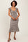 Beige Striped Front Tie Lace Trim Fitted Midi Dress