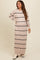 Beige Striped Knit Drop Shoulder Maternity Midi Dress