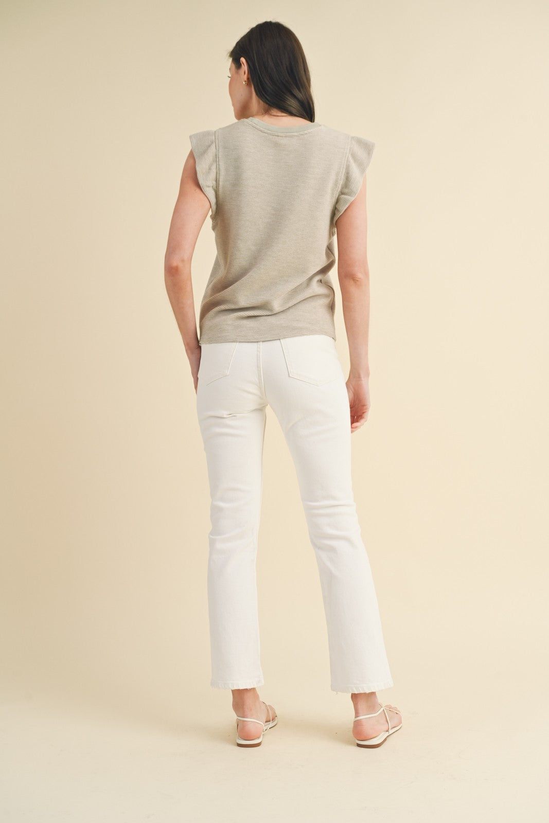 Beige Striped Ruffle Sleeve Top