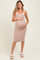 Beige Striped V-Neck Sleeveless Maternity Midi Dress