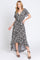 Black Animal Print Wrap Front V-Neck Hi-Low Midi Dress