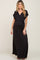 A solid maternity maxi dress with a wrap neckline and sash tie waist. Pocketed.