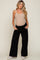 A solid pair of wide leg maternity pants with an elastic waistband. Pocketed.