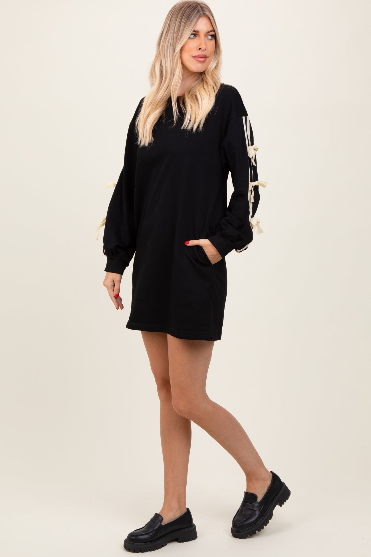 Black Bow Detail Long Sleeve Sweatshirt Mini Dress