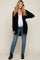 A solid chunky knit maternity open front cardigan with a cable knit accent. Pocketed.