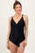 Black Crossover V-Neck Sash Tie Ruched Maternity Swimsuit