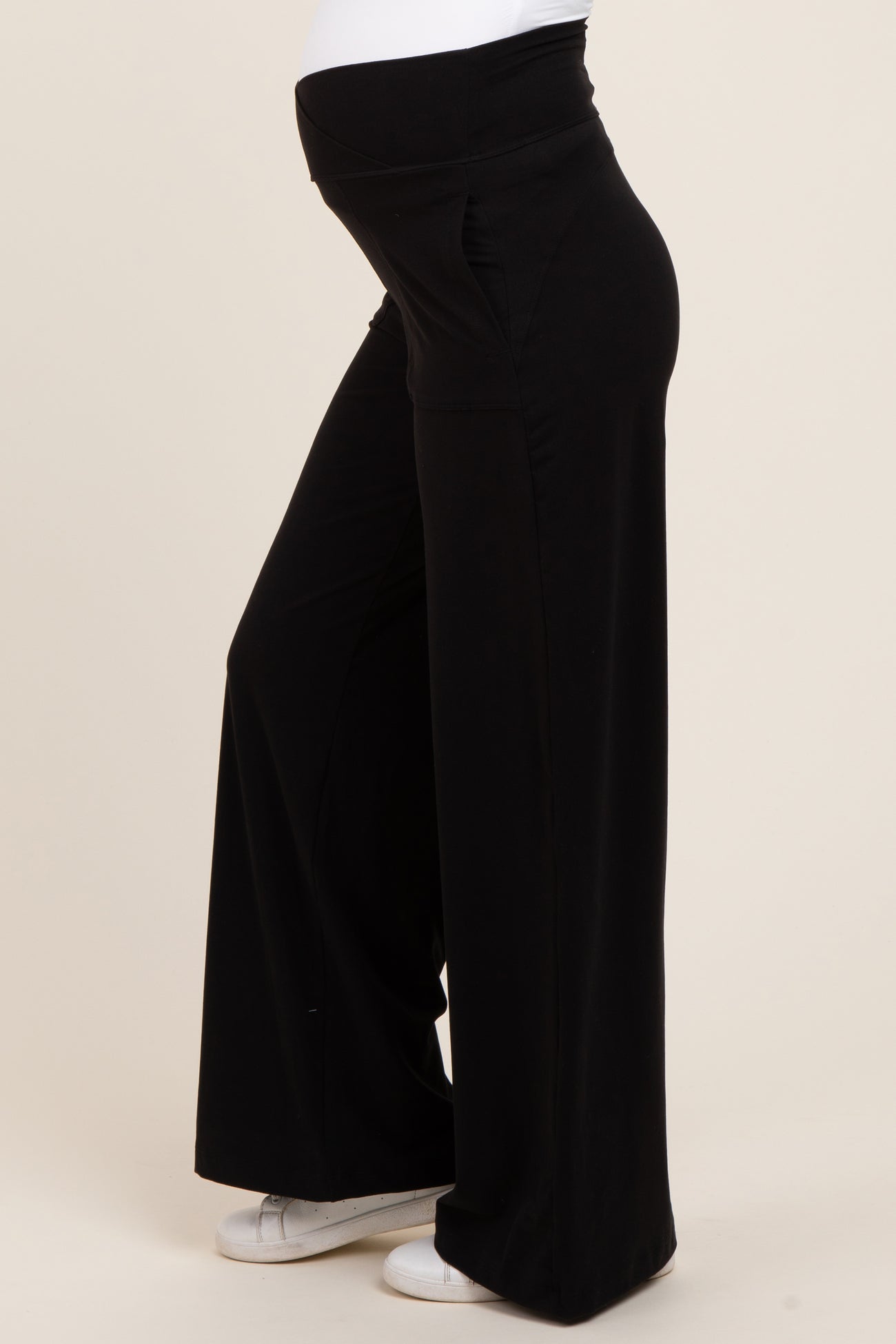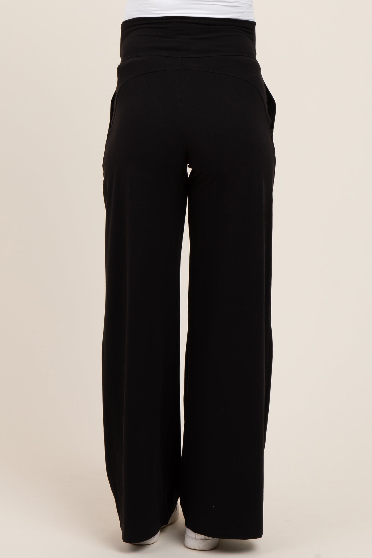 Black Crossover Waist Active Wide Leg Maternity Pant