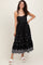 Step into effortless elegance with our Black Embroidered Shoulder Tie Midi Dress. This enchanting piece features delicate white embroidery along the hem and scattered motifs for a charming contrast on sleek black fabric. Adjustable shoulder ties offer a customizable fit and add a playful, feminine touch. The midi length and tiered skirt create a flattering silhouette, perfect for any occasion from brunch dates to evening gatherings. Crafted for comfort and style, pair it with your favorite sandals or wedges to complete the look. Elevate your wardrobe with this versatile, timeless dress today!