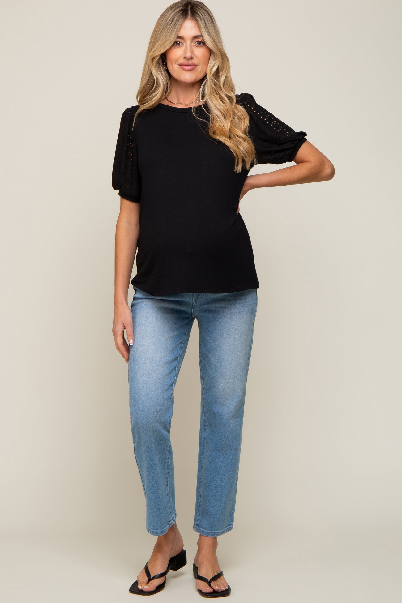Black Eyelet Lace Sleeve Maternity Top