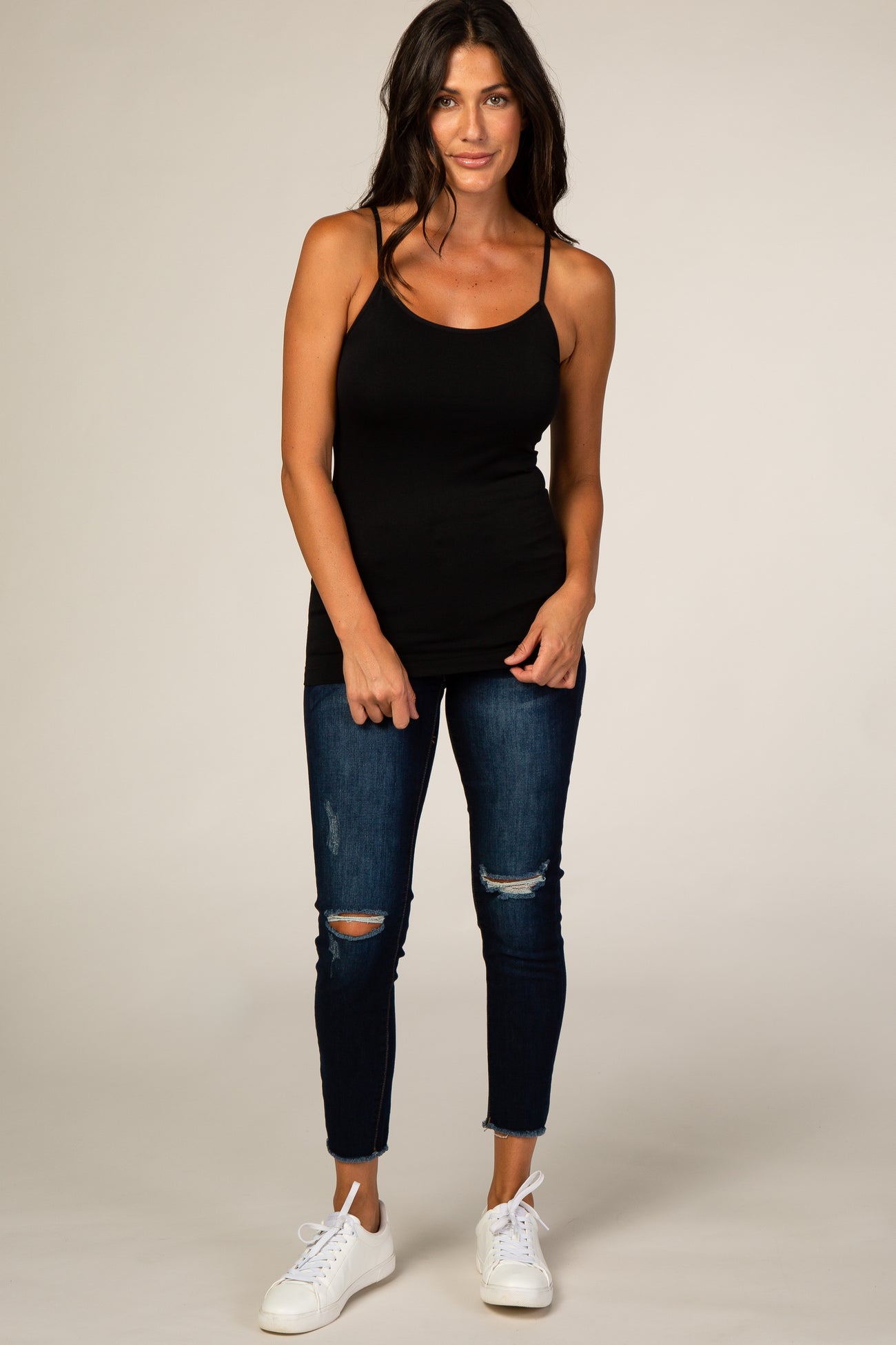 A basic fitted cami with adjustable straps.