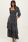 Black Floral Asymmetrical Ruffle Hem Maxi Dress