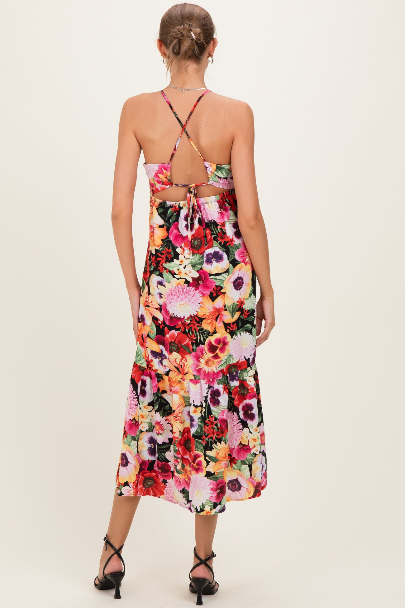 Black Floral Crisscross Back Maternity Midi Dress
