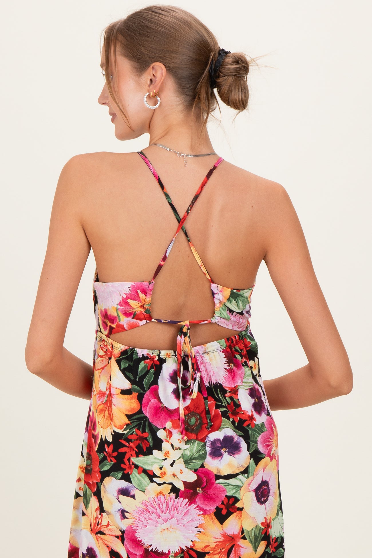 Embrace effortless style and comfort with this Floral Crisscross Back Maternity Midi Dress. Crafted from soft, breathable fabric, this dress gently hugs your bump while allowing room to grow. The flattering V-neckline and delicate crisscross back straps add a touch of elegance, perfect for both casual outings and special occasions. The midi length flows beautifully, ensuring you stay cool and comfortable throughout the day. Easy to dress up or down, this maternity dress is a versatile addition to your pregnancy wardrobe. Celebrate your journey with a dress designed for comfort and charm.