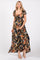 Black Floral Drawstring Front Side Cutout Maxi Dress