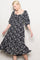 Black Floral Front Tie Puff Sleeve Midi Dress