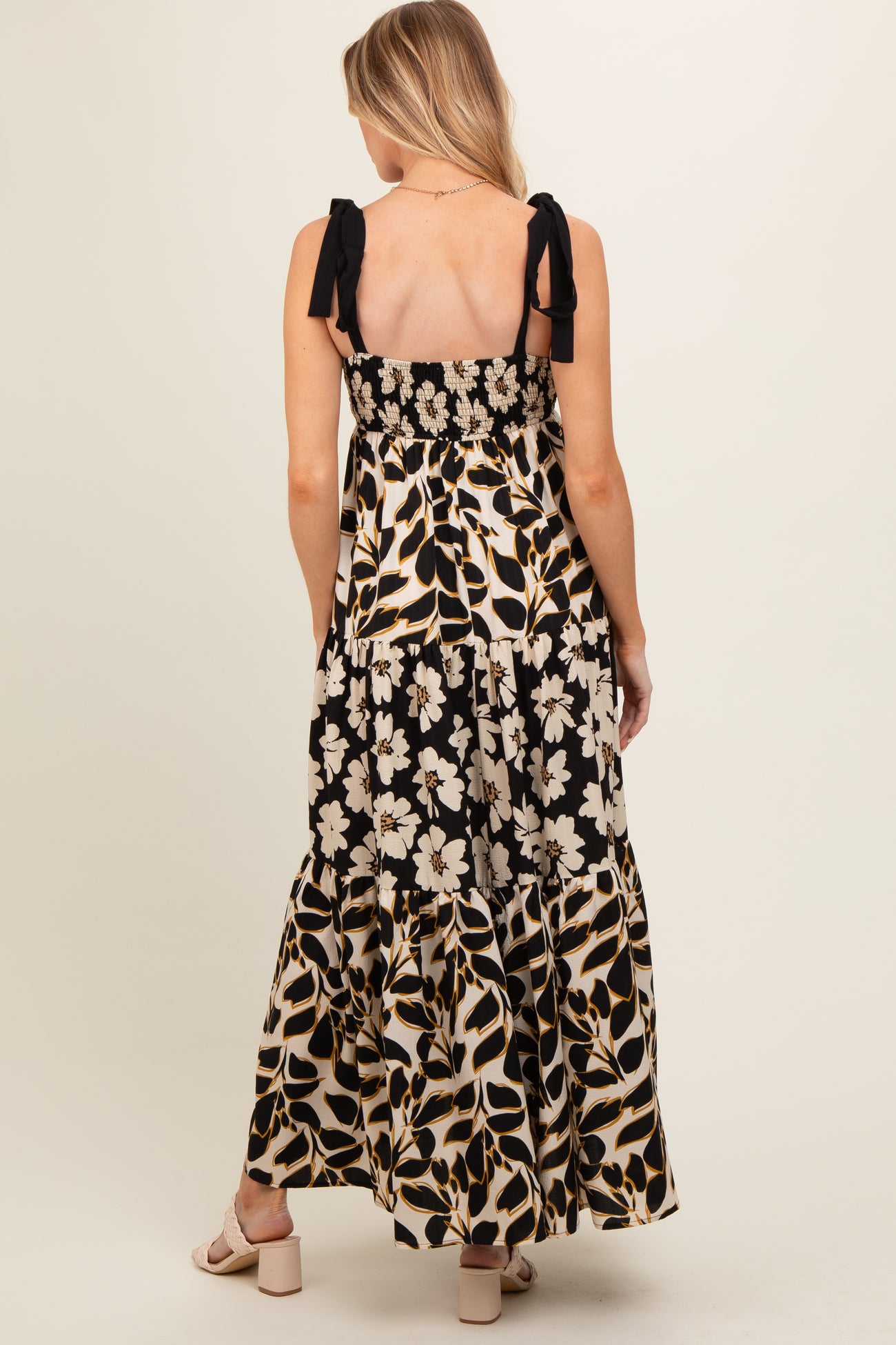 Black Floral Print Sleeveless Tiered Maternity Maxi Dress