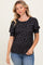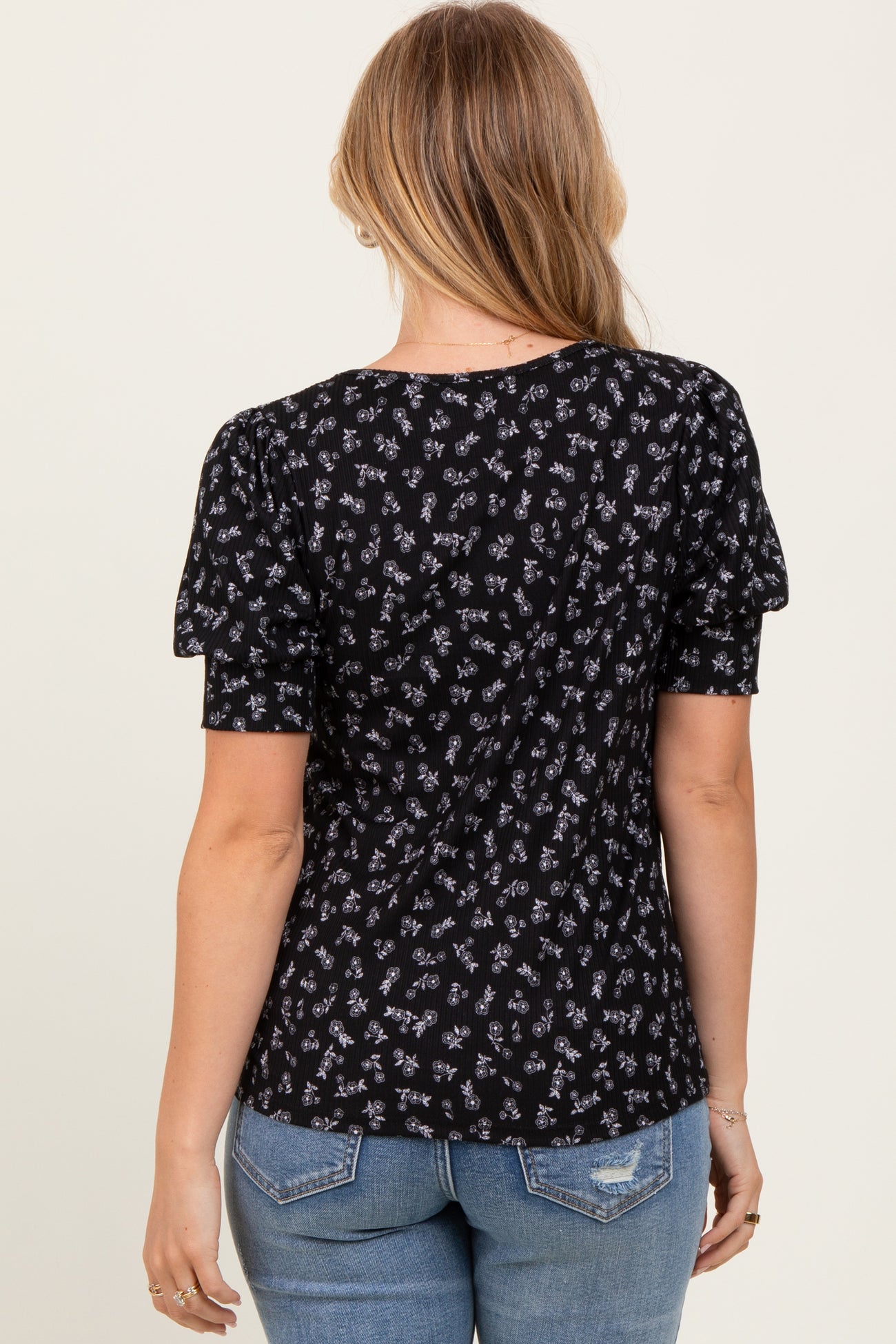 Black Floral Ribbed Puff Sleeve Top