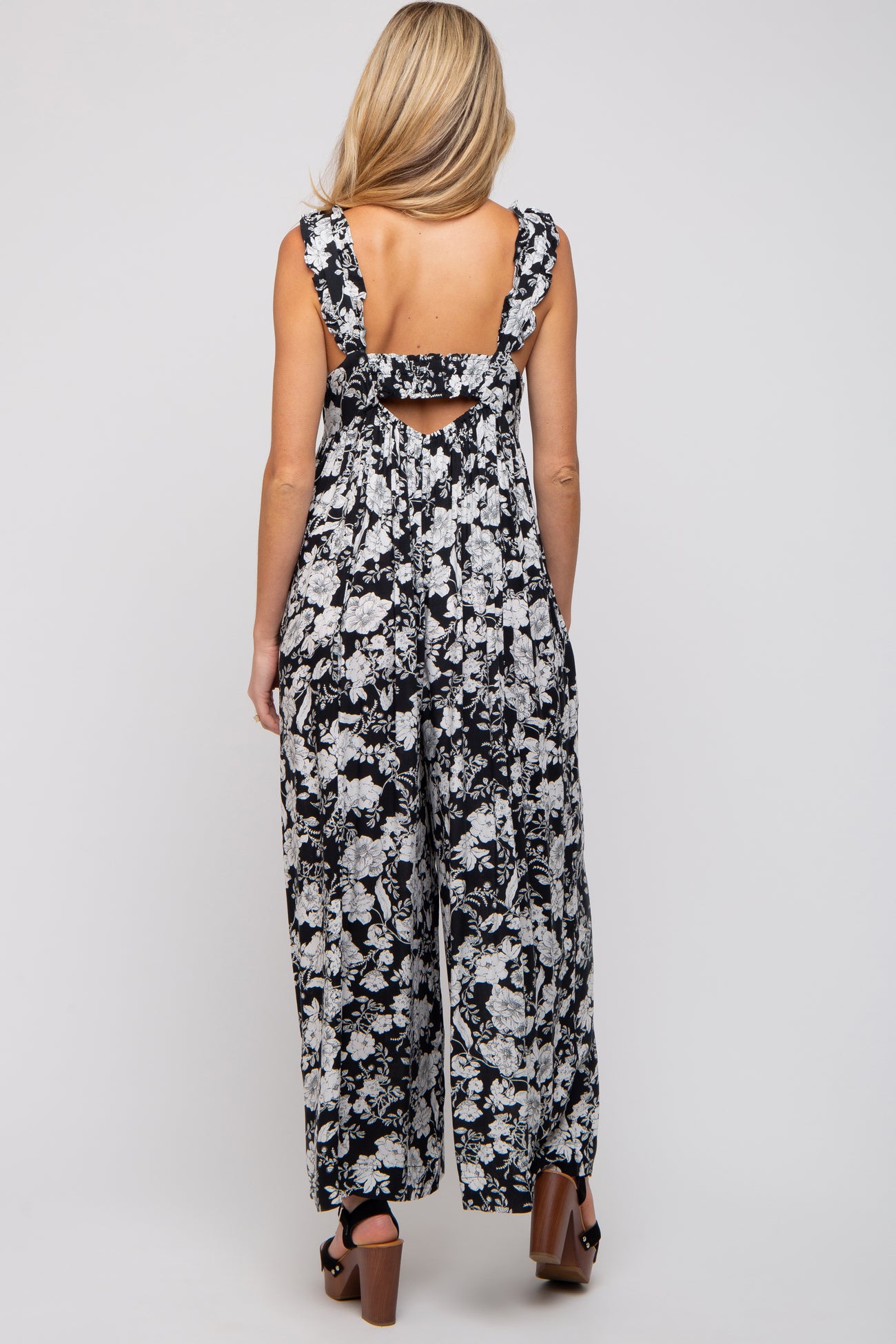 Black Floral Ruffle Strap Maternity Jumpsuit