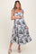 Embrace effortless style and comfort with this floral shoulder tie maternity midi dress. Designed with adjustable striped straps that tie at the shoulders, it offers a customizable fit throughout your pregnancy. The flowing A-line silhouette provides plenty of room for your growing bump while maintaining a flattering shape. Crafted from soft, breathable fabric, this dress ensures all-day comfort in warmer weather. The delicate floral print pairs beautifully with stylish striped trim details, creating a charming, feminine look perfect for casual outings or special occasions. Step out in confidence and grace with this versatile maternity dress.