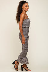 A floral midi dress with a straight neckline, adjustable straps, a smocked body, and ruffle accent tiers.