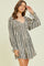 Details A floral striped dress featuring a smocked bust, a v-neckline, ruffle accents along the shoulders and waist, long cinched sleeves, and side pockets. Body is lined. Content + Care