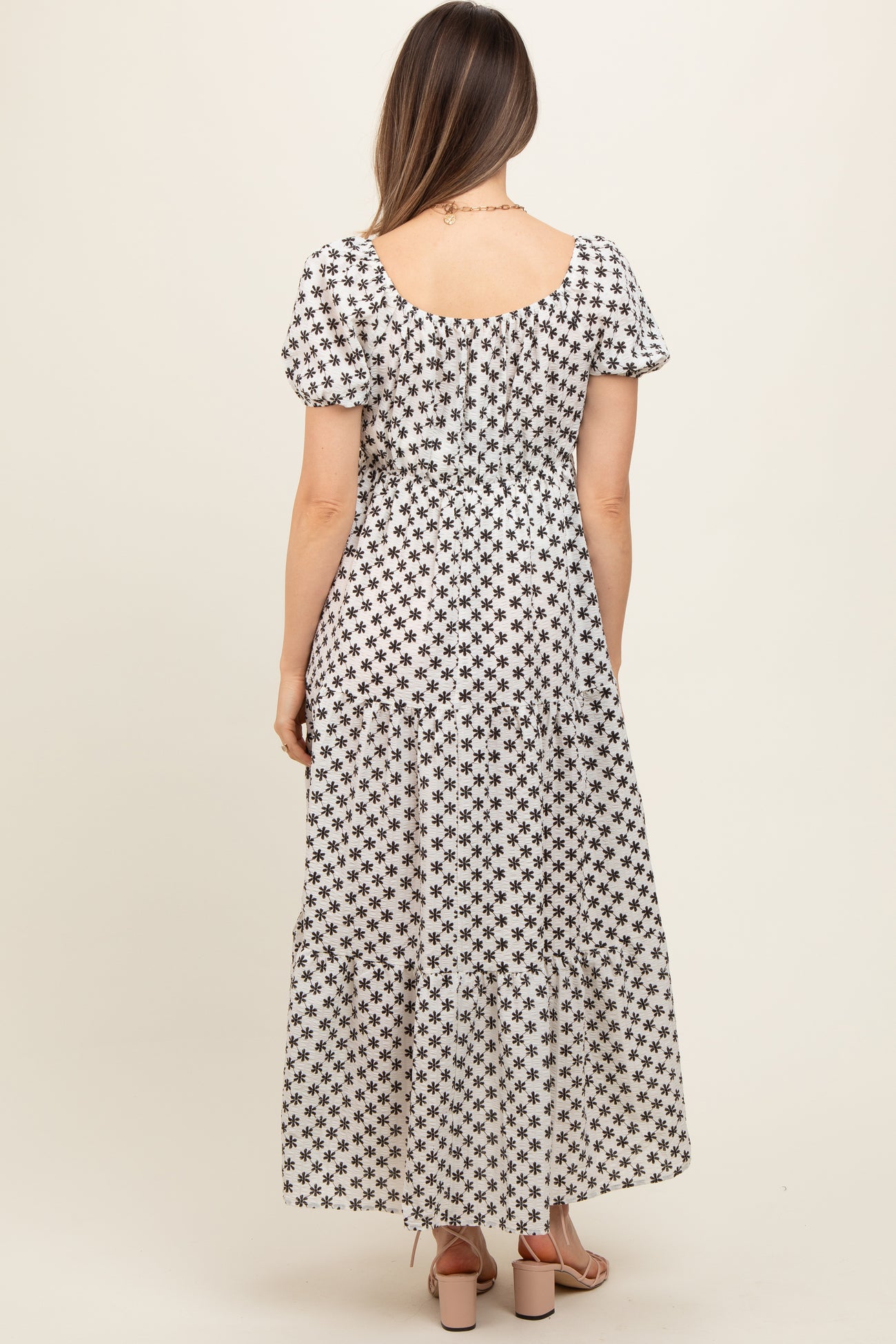 Black Floral Tiered Puff Sleeve Maternity Maxi Dress