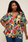A floral print plus v-neck short sleeve blouse in an oversized fit.