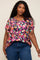 A floral print plus size top featuring a v-neckline and short dolman sleeves.