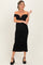 Black Glitter Ruched Off Shoulder Maternity Midi Dress