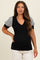 Black/Ivory Striped Ribbed Short Puff Sleeve V-Neck Maternity Top