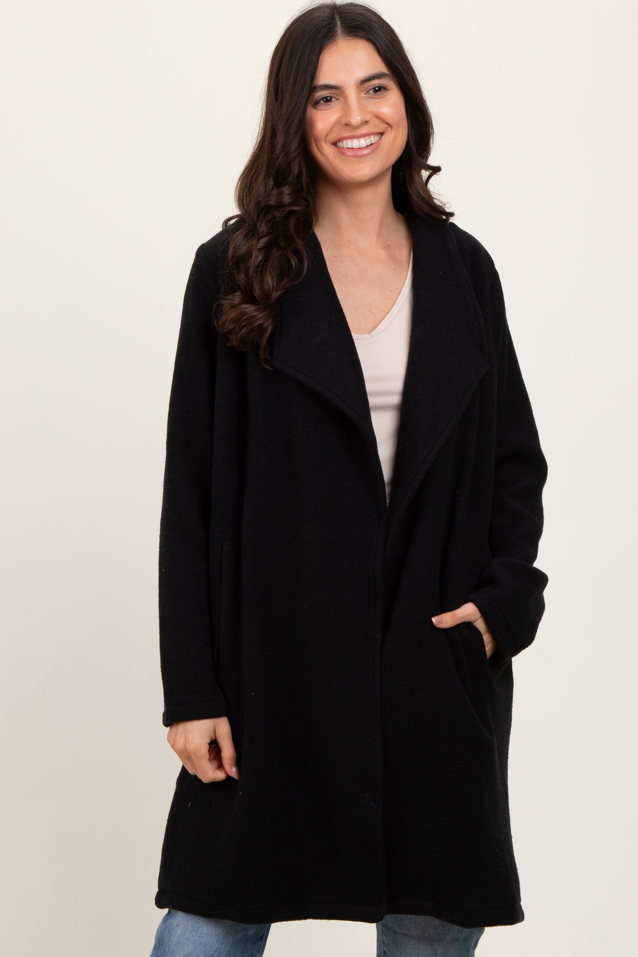 Stay cozy and stylish throughout your pregnancy with our Black Knit Relaxed Fit Maternity Coat Jacket. Crafted from soft, breathable knit fabric, this coat offers ultimate comfort and warmth without compromising on style. Its relaxed fit allows room for your growing bump, making it perfect for all trimesters. Featuring an open-front design with wide lapels, it pairs effortlessly with casual or dressy maternity outfits. Ideal for layering, this versatile coat will become a staple in your maternity wardrobe, providing both function and fashionable flair as you embrace motherhood.