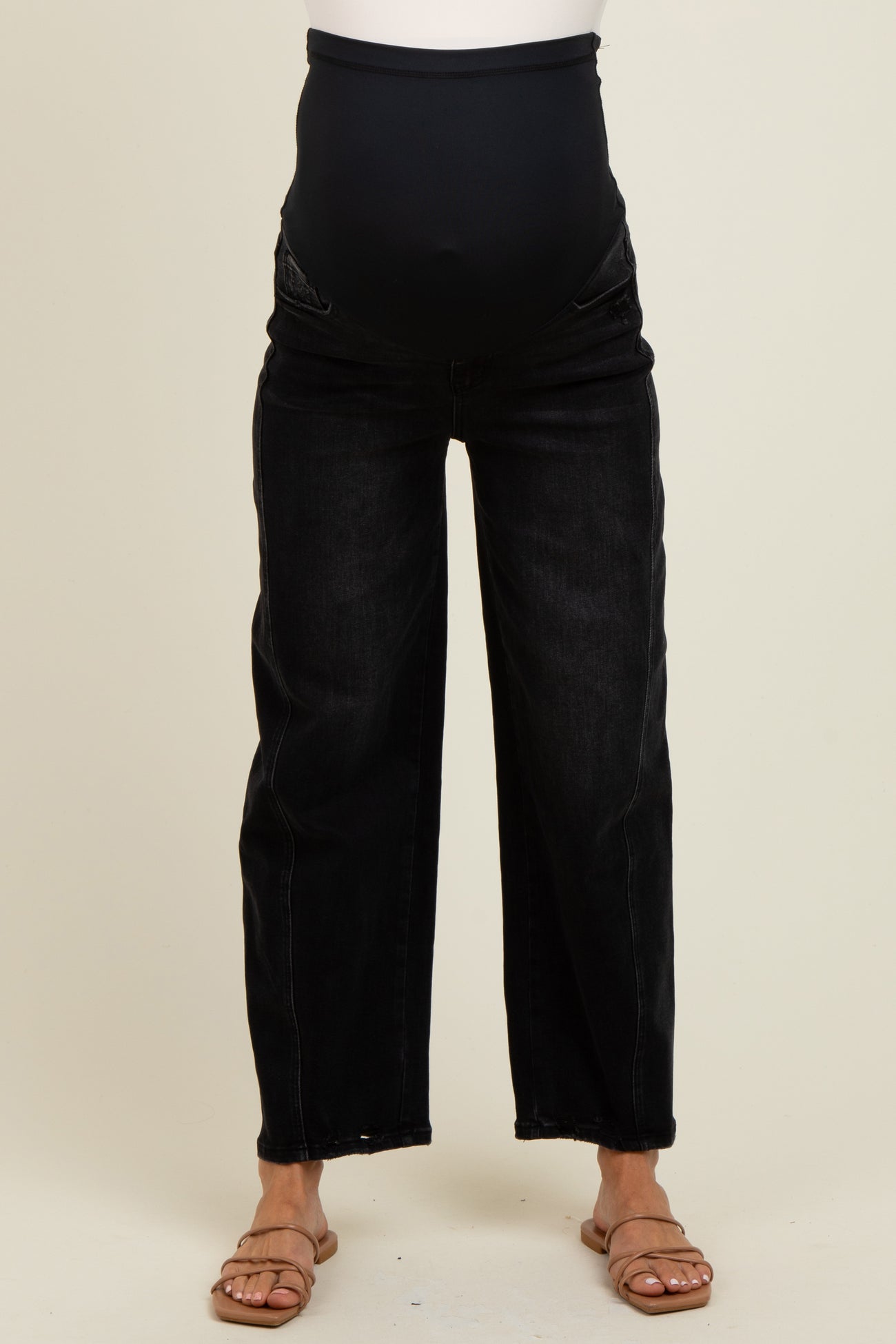 Black Lightly Distressed Panel Detail Maternity Barrel Jeans