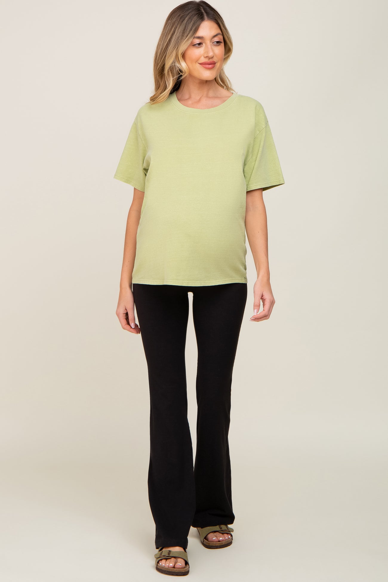 Experience ultimate comfort and style during your pregnancy with our maternity flared leggings. Designed with a supportive over-the-bump waistband, these leggings gently stretch as your belly grows, providing a secure and flexible fit. The flared leg adds a touch of effortless elegance, making these a versatile choice for casual days out or dressing up for an evening. The soft, breathable fabric keeps you cool and comfortable all day long. Pair with your favorite maternity tops, tunics, or sweaters for a flattering silhouette that celebrates every stage of motherhood. Elevate your maternity wardrobe with this must-have staple!