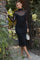 Black Mesh Overlay Fitted Midi Dress